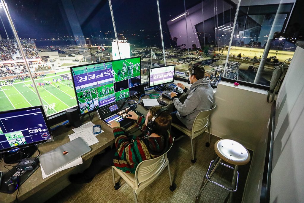 In response to government-mandated limitations on stadium attendance associated with the COVID-19 pandemic, Prosper ISD is proud to announce that it will produce live video broadcasts of Prosper Eagle and Rock Hill Blue Hawk home football games this fall. The broadcasts will be staffed by members of the Prosper and Rock Hill broadcast journalism departments in roles on and behind the cameras.
