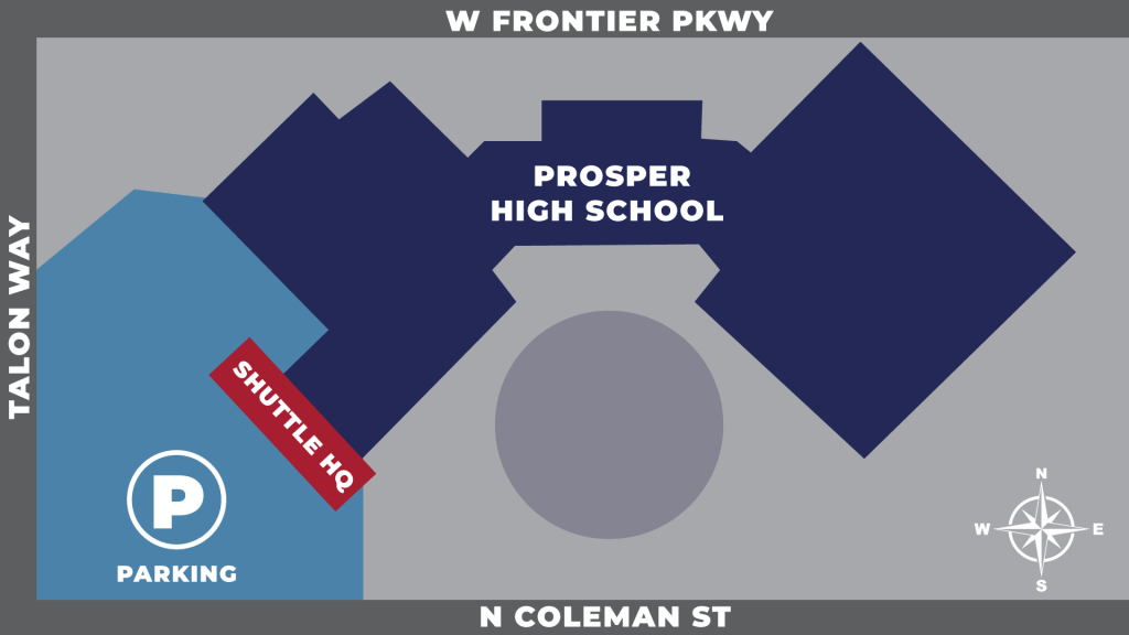 Attendees are encouraged to park and ride the free shuttles to and from the event, as parking is limited in the Downtown Prosper area. Complimentary shuttles will run from Reynolds Middle School, 700 N. Coleman Street and Prosper High School, 301 Eagle Drive, beginning at 1:30 p.m. and continue to run as long as needed to return attendees to their cars. An ADA bus will run to the event from Reynolds Middle School.
